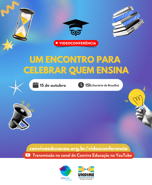 Em celebração ao Dia do Professor, a Undime e o Conviva Educação realizam, no dia 15 de outubro, às 15h (horário de Brasília), videoconferência intitulada “Um encontro para celebrar quem ensina”.
