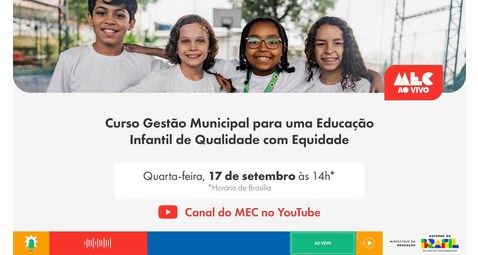 Curso apoiará gestores municipais na implementação das Diretrizes Operacionais de Qualidade e Equidade para a Educação Infantil. Lançamento ocorrerá na quarta-feira (17), com transmissão pelo canal do ...